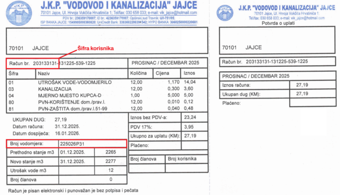 Ponosimo se našom predanošću sigurnosti, higijeni i pouzdanosti usluga, te stalnim ulaganjima u modernizaciju infrastrukture i tehnologija prečišćavanja vode. Naš cilj je da svaki dom u općini Jajce ima pristup čistoj vodi i funkcionalnoj odvodnji, bez prekida i smetnji.